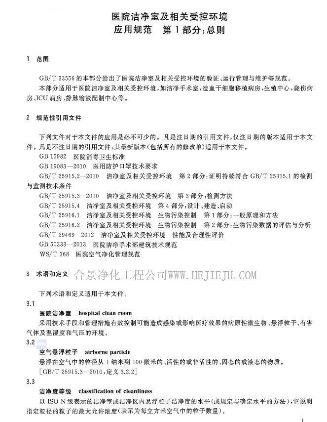 醫院潔凈室及相關受控環境應用規范(GB/T33556.1-2017)全文完整版